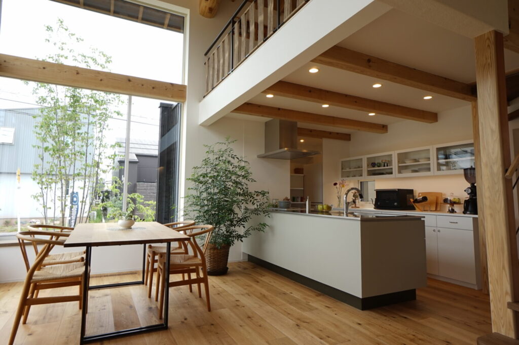 ところが1階の部分は、自然素材の手法を使いながらも、現代的な要素も入れ込むことによって、ある程度価格を抑えたり、明るい環境を作ったりしています。