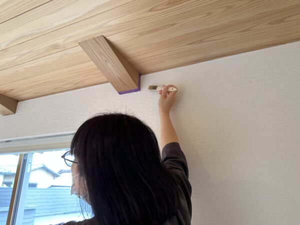 ④マスキングテープ(今回は木材と漆喰壁の取り合い部分だったため木材を守るの養生として使います。)