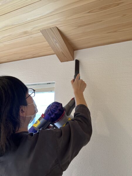 まず最初に掃除機で壁に付いてる埃を吸っていきます。