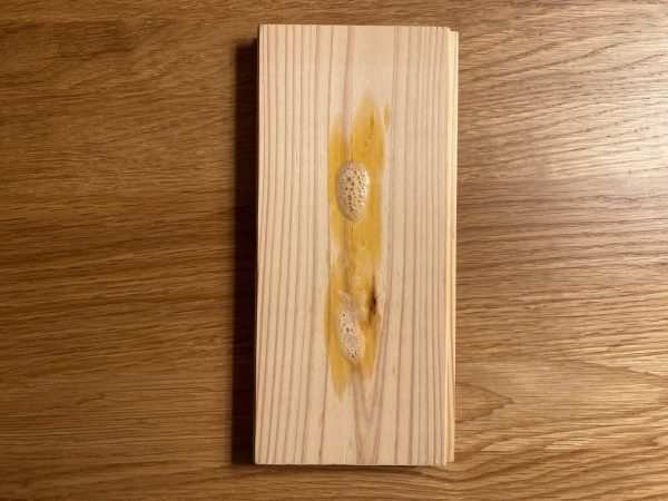 ちなみに、上の写真の板の中央部分に、うっすら黄色の染みがありますが、
