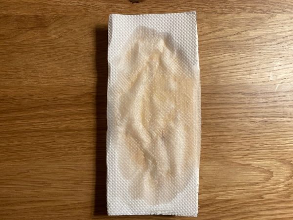 アルカリ性が酸性で中和されています。見事に染みが消えてます。