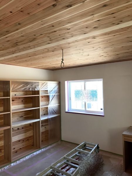 漆喰の作業が終わると、造作キッチン、製作木製建具、照明器具等の取り付けへと進みます。