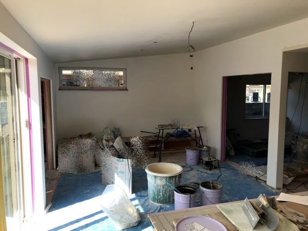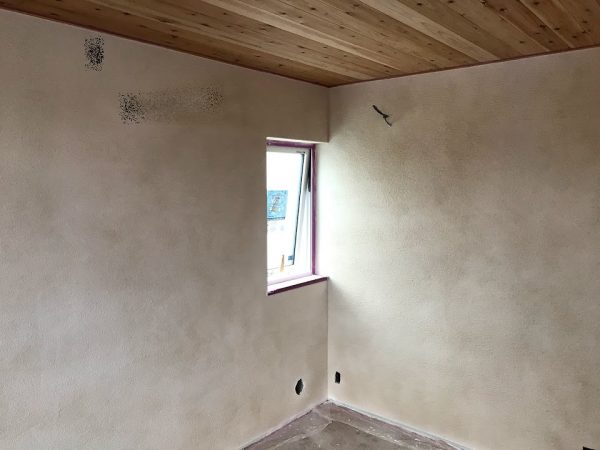 現在建築中の東区の現場ですが、内部にて漆喰の作業が進んでおります。
