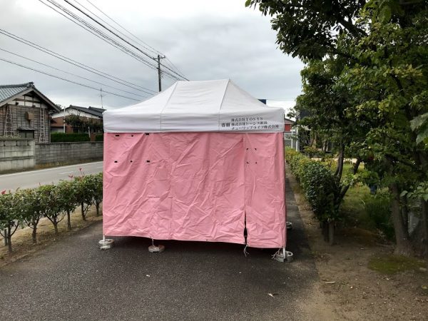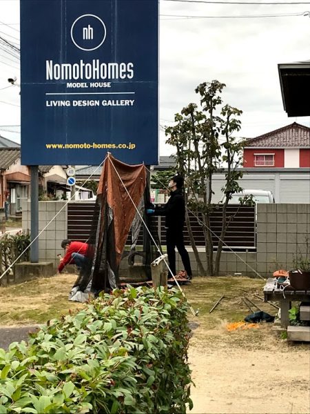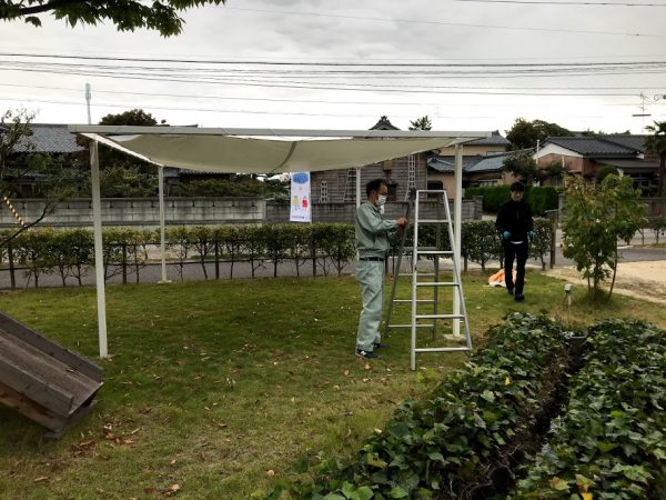 ↑飲食スペースのテント組み立て