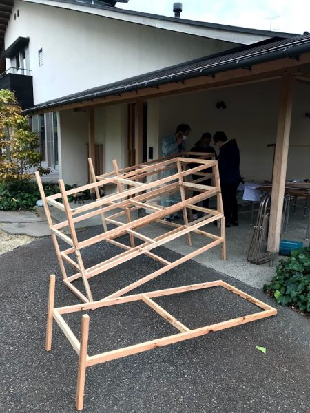 ↑パーテーションを組み立て