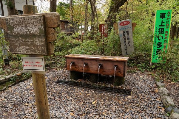 森の入り口に看板が 「この水は現在生活用水として利用され続けています。
