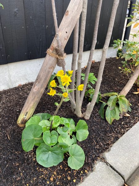 余談ですが、自宅に植えたツワブキの花が咲きました。