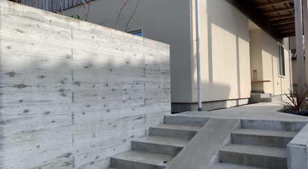 本物の杉板を型枠として使ったコンクリートの擁壁も特徴になっています。