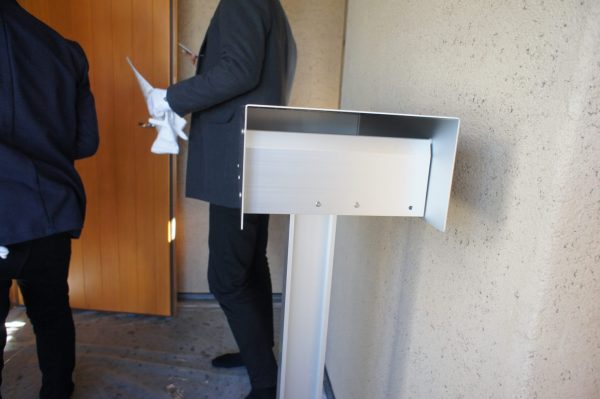 この壁埋め込み型のポストは内部に数百本もの防風ブラシがついていて、