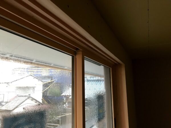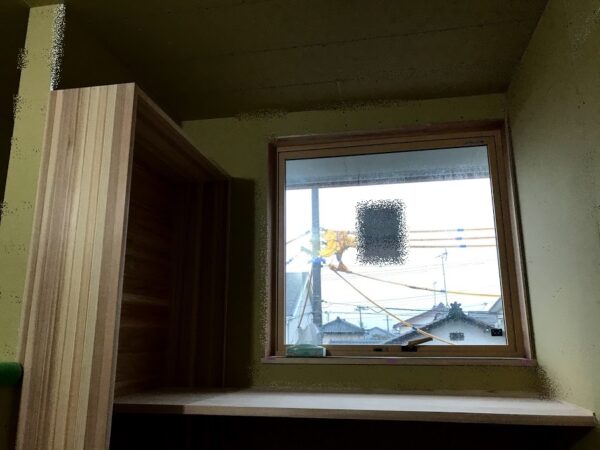 窓に設置される障子の窓枠も取付されました。