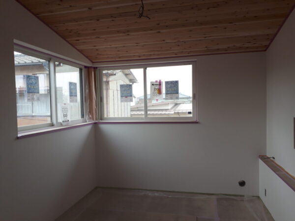 こちらの建物は2階各居室の天井を緩やかな勾配とし