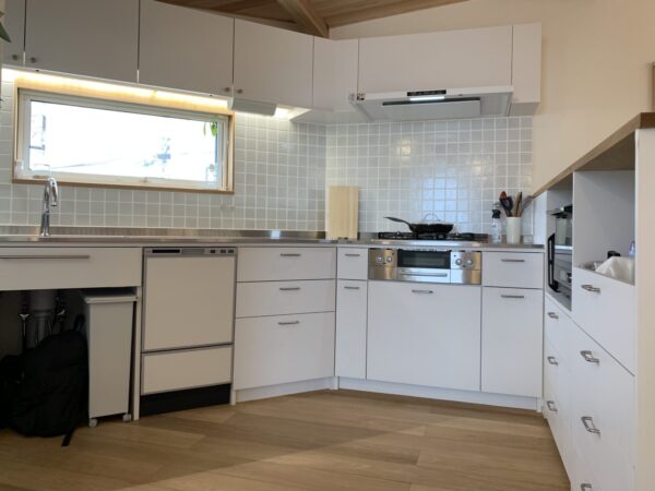 キッチンは敷地形状に合わせたキッチンになっており、とても使い勝手の良いキッチンに