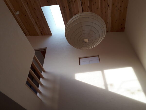 広間吹き抜けには 2階ホールとトップライトから