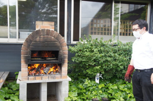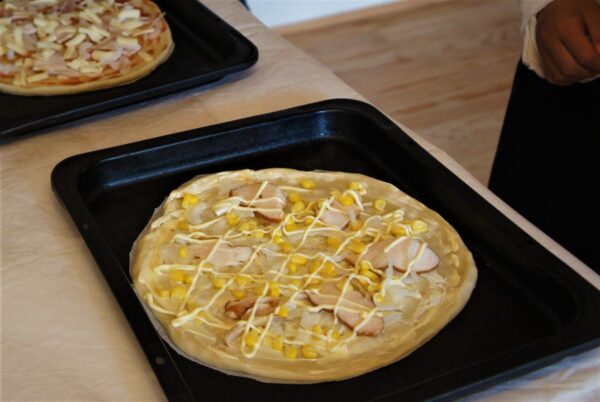 発酵させないピザ生地の作り方を教えてもらい、展示場外にある