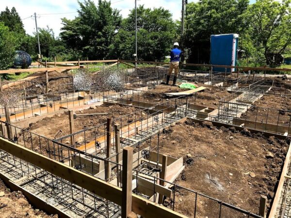 基礎の鉄筋組みまで進み、先日、配筋検査を受けました。