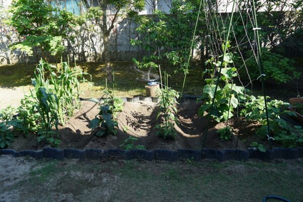 庭の木々も枝を伸ばし、葉を広げ畑の上に大きく傘を広げるようになってきました