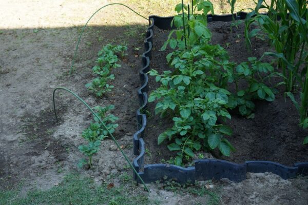 畑の外側に植えたジャガイモは、芽を出して4・5日でここまで育ちました
