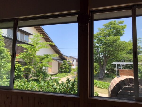 話は変わりますが、私の席は特等席で、毎日展示場と庭を眺めながら仕事をしています!