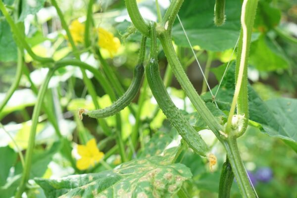 キュウリは、毎日5~6本収穫でき食卓にのぼります