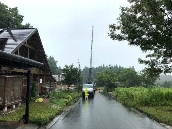 レッカー作業や建物の配置などの諸事情により、今回は道路を通行止めにして作業を行うことになりました。