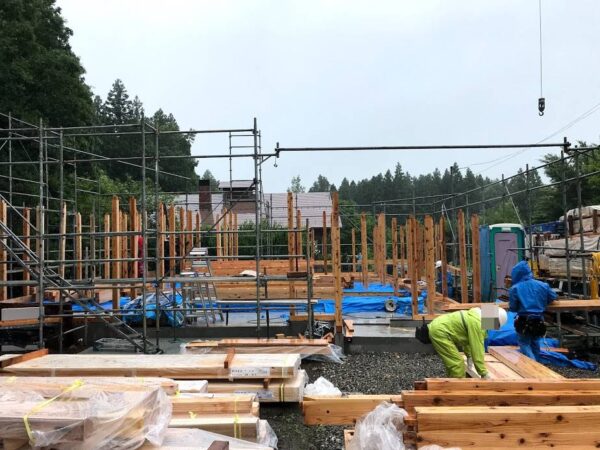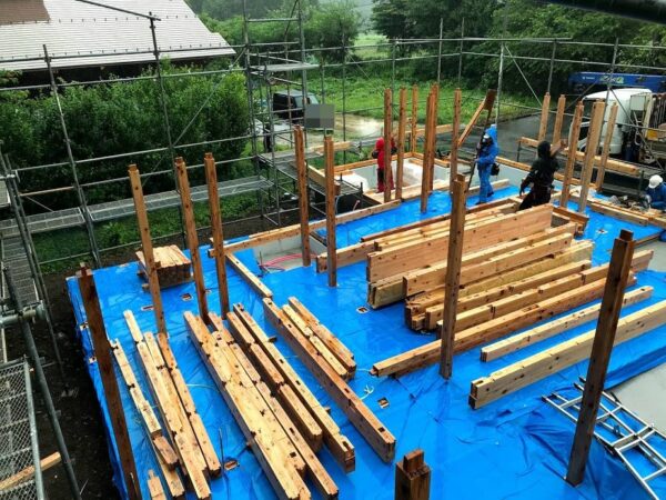 本日の作業は、屋根垂木を一部打ち終わったところで終了となりました。