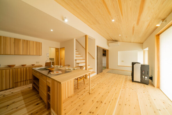 また、キッチン部分は1階床よりも下がっており、キッチンに立った人とダイニングに