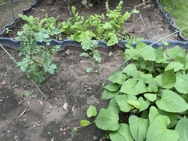 右のサツマイモ ‥‥ 葉は、とても育ちが良さそうですが