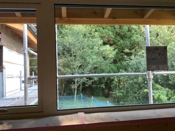 ピクチャーウインドウからは自生する栗の木その奥には