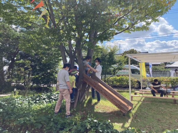 ウッドデッキで使用する「エステックウッド」で造った木のすべり台も、