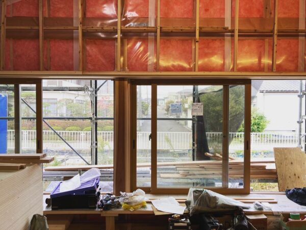 現場は断熱気密工事が終わり、これから石膏ボード張り、造作工事へと移っていきます。