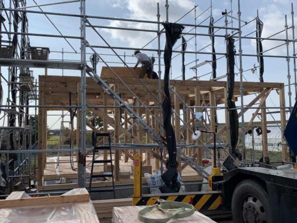 天候も良く、いつもよりも気温も高めで上棟日和でした。