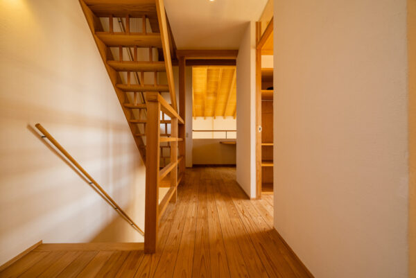 向陽の家の階段は木製のストリップ階段でしたので、手すりは杉で作りました。