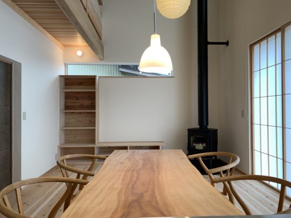 本日、見学会用に家具を搬入しました。2週連続で薪ストーブのあるお住まいと
