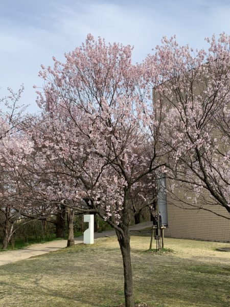 先週、鳥屋野図書館に行ったら2本だけ桜が咲いていました。