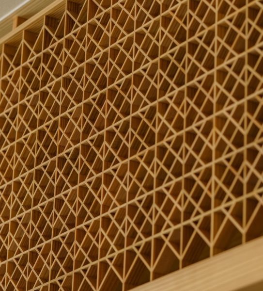 組子を等間隔に見せる割り付けが非常に大変で、何度も何度も計算しながら、
