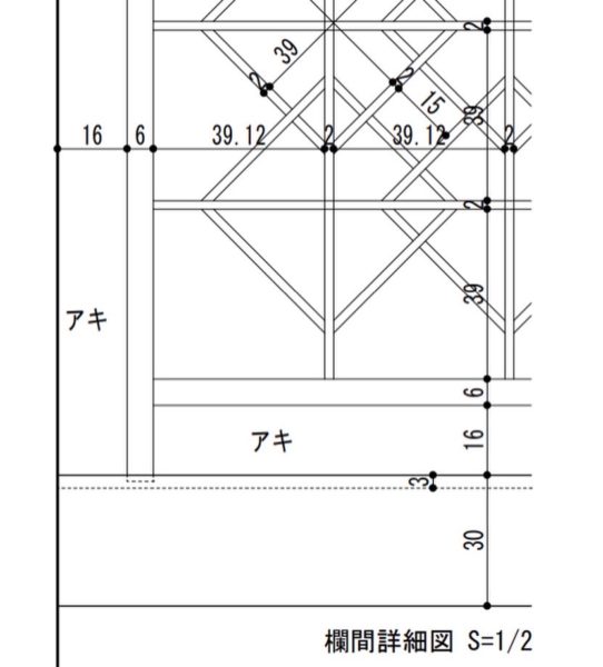 和室の欄間は、泉幸甫先生の著書を参考に、図面を引きました。