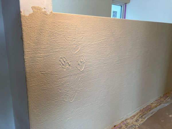 石膏ボードに下塗りを行った状態で、まずは中塗りを行います。