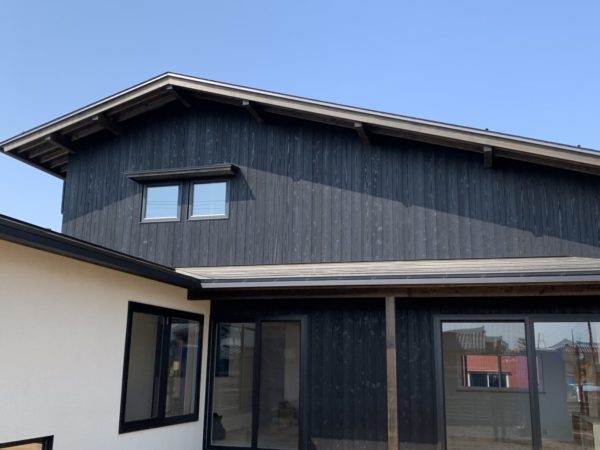 メインの外壁には焼杉板を使い、周辺環境にも配慮した仕上げとなっています。