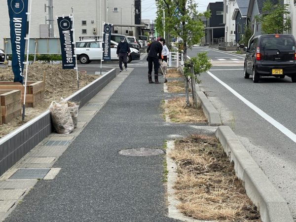 いっしょに歩道の草刈り