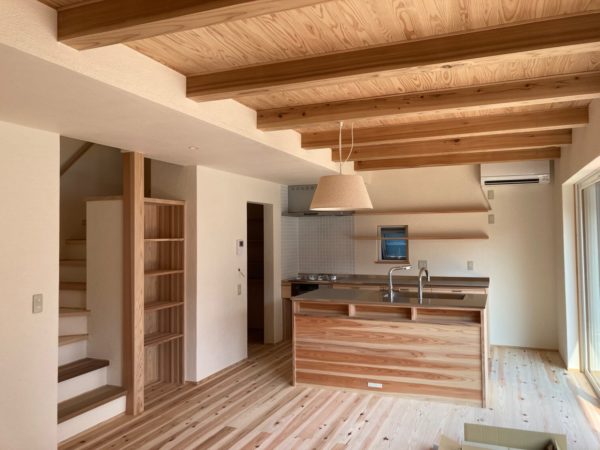 杉と漆喰で作った自然素材の温かみを五感で体感できる木の家です。