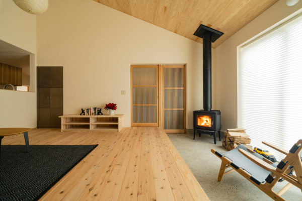 室内空間には縦横の強弱をつけ空間の広がり感を持たせ