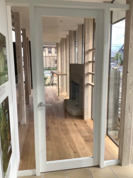 弊社カフェのドア こちらもお客様を迎えるうえで