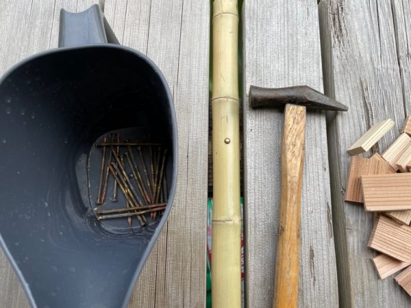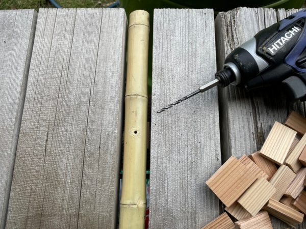 竹は節の近くで切ると割れにくくなるのでノコギリで切りました