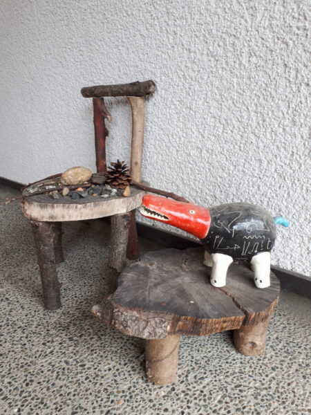 こちらは玄関先に置かれた手造りの味の有る小さなイスと