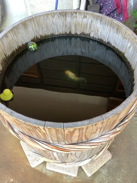 建主さまのお店の前に置かれた木桶