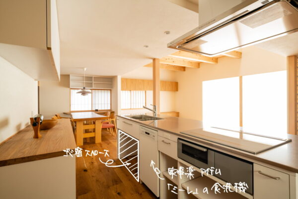 食洗機を組み込んだりと細部までこだわった家の