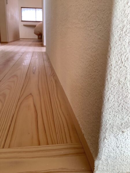 上は2階床と漆喰壁と取り合い設けられた巾木です
