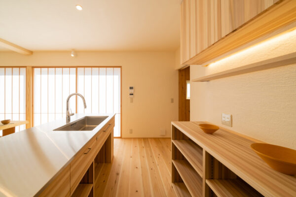 ただ、対面式の場合の食器棚に比べて吊戸棚が無い分、収納量が減る場合がありますね。