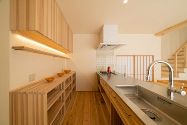 一方、造作のキッチンの大きなメリットはその建主さまが使いやす いようにカスタマイズできることです。