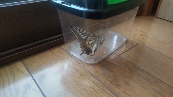 自宅で飼っている青虫ですが、さなぎになってから寒さのためか3週間が経ち、ようやく今朝羽化しました。小さな娘としばらく眺めてました。